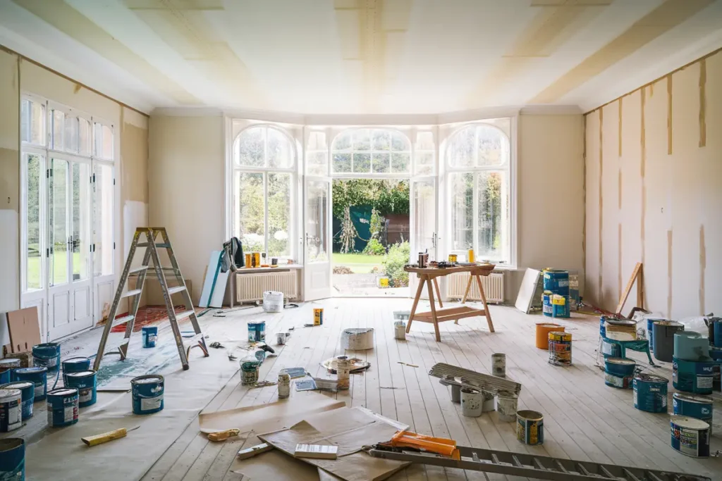 Sanding, staining, and sealing to revive old wooden floors like new.